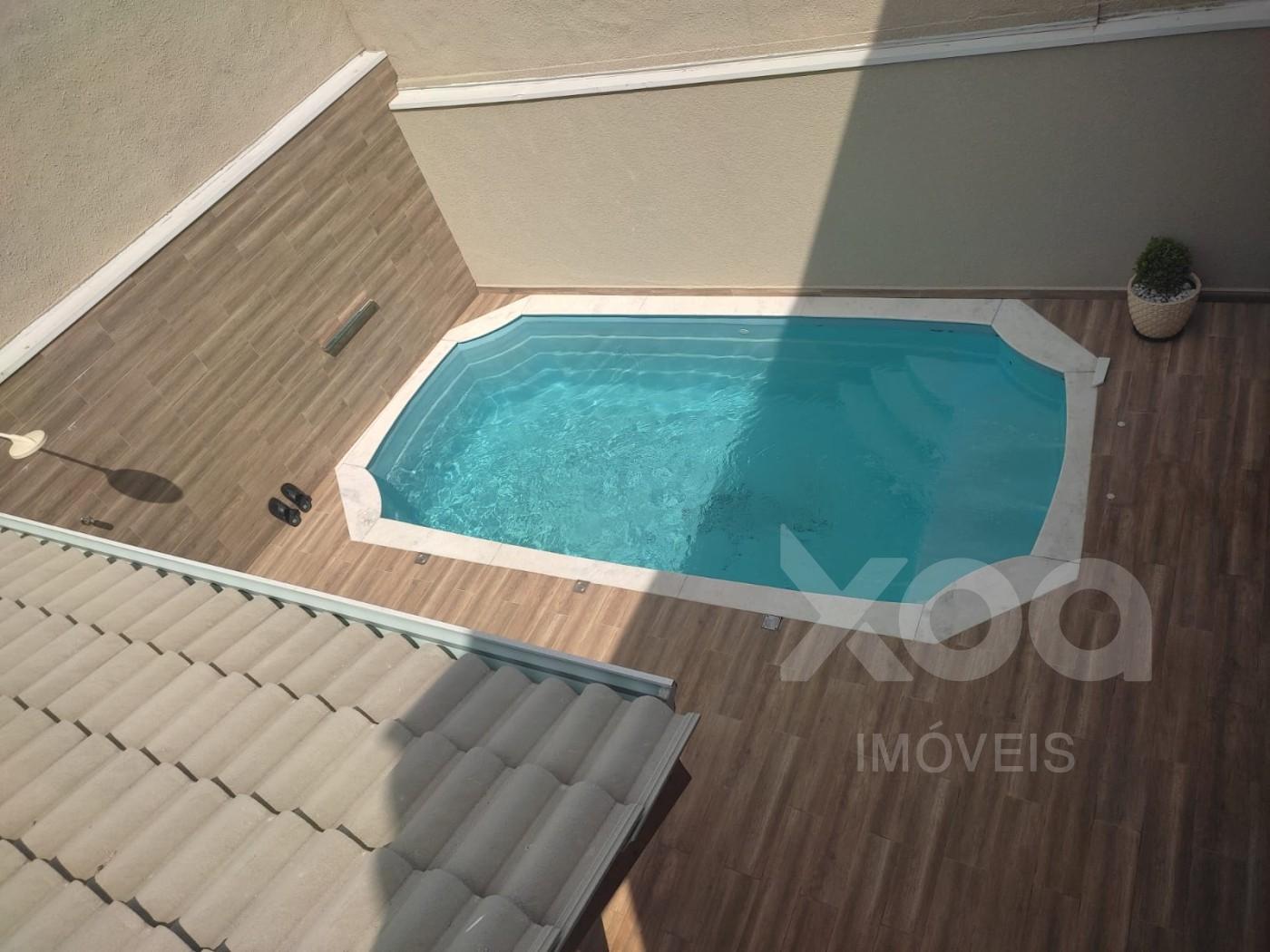 A casa conta com três amplos quartos, sendo uma suíte com varanda e closet, piscina, área gourmet, sala para três ambientes, cozinha integrada, banheiro social, lavabo, despensa
