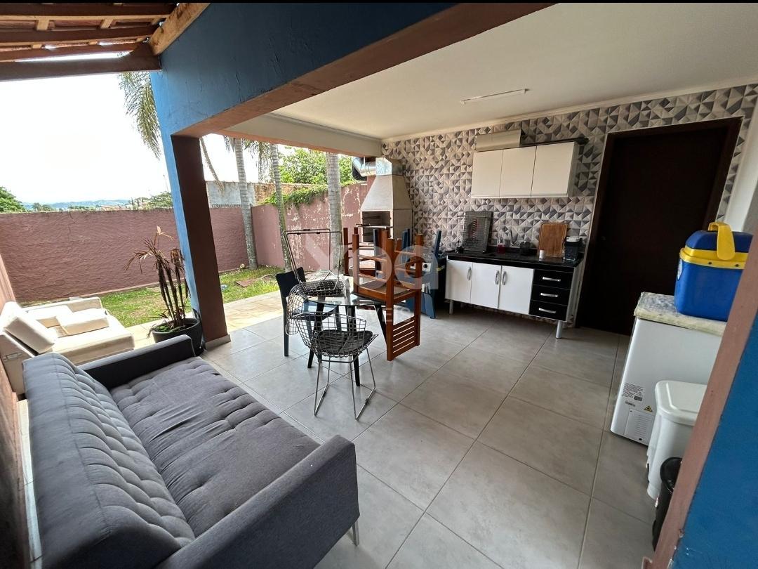 A casa inclui um salão na parte de baixo que pode virar mais um dormitório ou escritório. esse espaço tambem conta com uma churrasqueira para os momentos de lazer