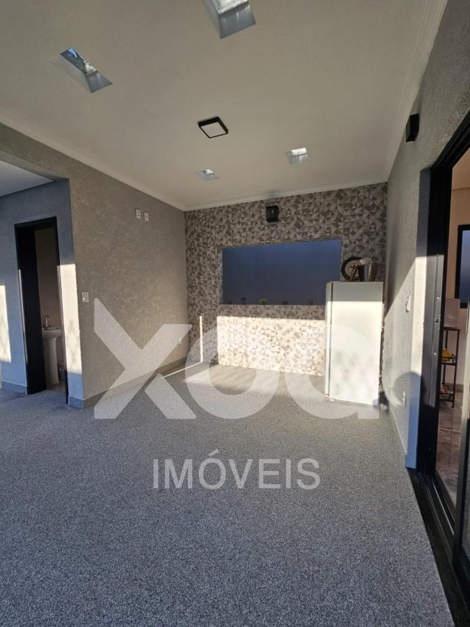 No coração da casa, a cozinha americana integra-se à sala de jantar e ao living TV, promovendo encontros descontraídos em família ou com amigos. A área de serviço fechada garante praticidade ao dia a dia, enquanto a área gourmet – preparada para instalação de churrasqueira – se abre para a piscina com cascata, complementada por um lavabo externo. Duas vagas cobertas e uma descoberta resolvem a questão do estacionamento, deixando o ambiente ainda mais organizado e funcional.